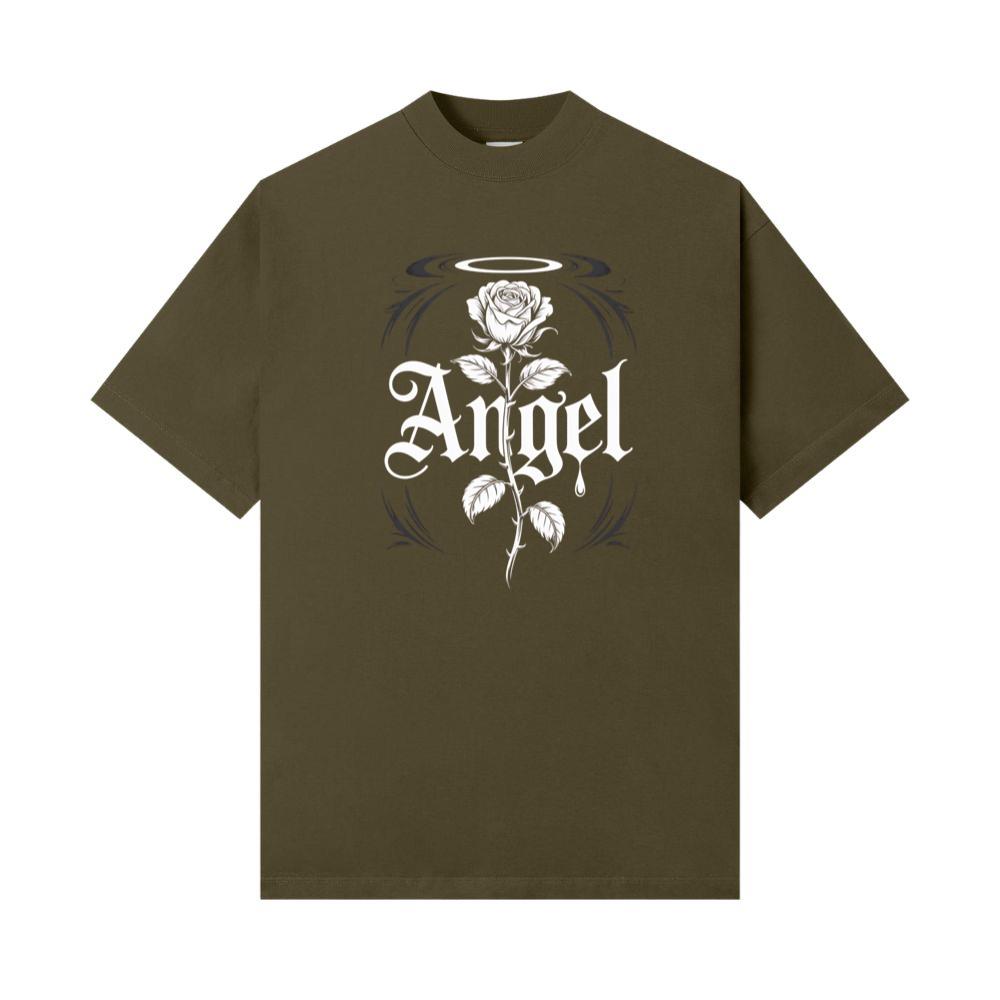 Angel Rose Floral Gothic Typography Design T-Shirt